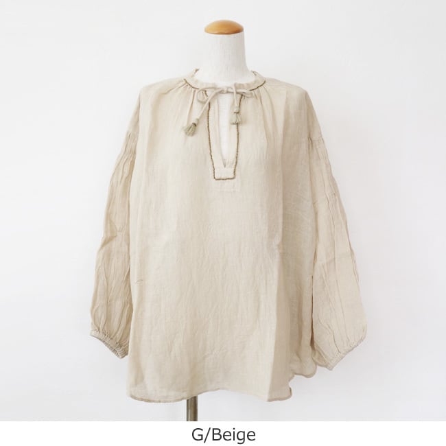 リネンコットンのスラブ糸を使用したナチュラルなが魅力のブラウス。