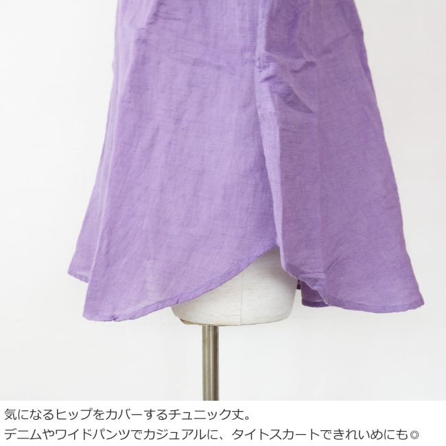 ヒップが隠れるチュニック丈で気になる体型カバーも◎のアイテムです。