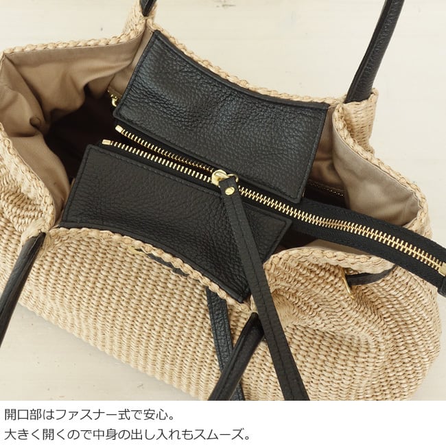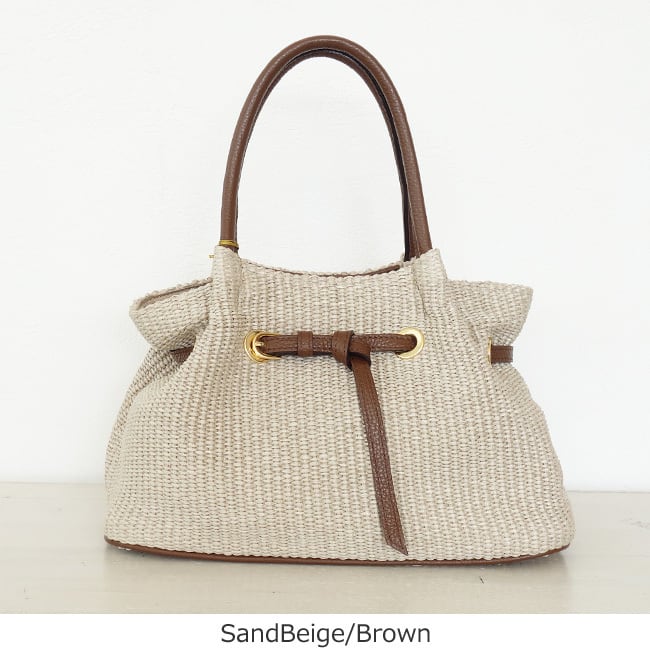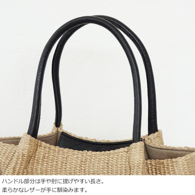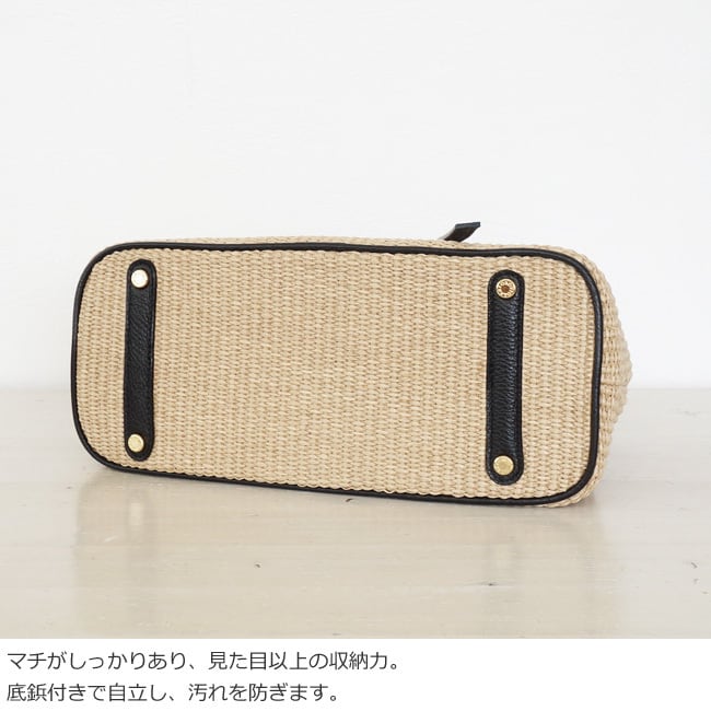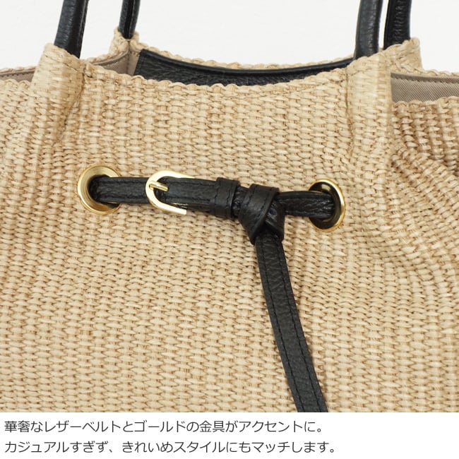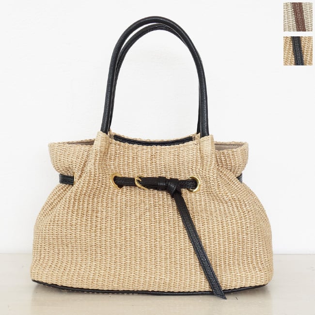 上品な風合いが魅力のイタリア製のラフィアシートを使用したかごバッグ。